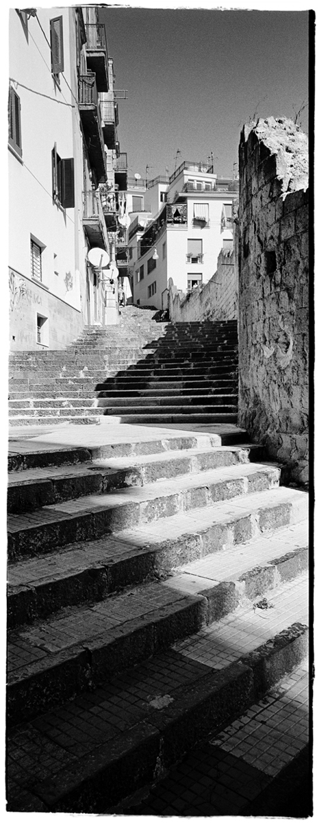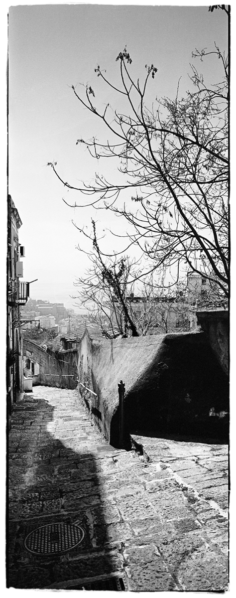 Si va "giùnapoli" al ritmo regolato di chi scende camminando in verticale. Che bella idea ha dunque avuto Simone Florena a fotografare le "pedamentine" della nostra città.